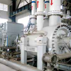 EGV系列水蒸氣離心壓縮機適用于MVR蒸發(fā)系統(tǒng)中,廣泛應用于化學工業(yè)(蒸發(fā)、結(jié)晶、提純、濃縮)、廢水處理(含鹽廢水、含重金屬廢水等)、制藥(維生素等)、食品、添加劑工業(yè)(味精、大豆、蛋白質(zhì)乳液的蒸發(fā))、飲料工業(yè)(牛奶,果汁,乳清,糖溶液的蒸發(fā))等。 屬于單級、高速、單懸臂結(jié)構(gòu),壓縮機軸端密封采用碳環(huán)密封。該壓縮機葉輪和蝸殼安裝在高速齒輪箱上,與齒輪箱成為整體,由電機驅(qū)動。 機型涵蓋以下共計16個機型:28/31/35/40/45/50/56/63/71/80/90/100/112/125/140/160。采用系列化設計及高效的三元流開式葉輪,機殼采用鑄不銹鋼整體鑄造。 壓縮機為整體撬裝結(jié)構(gòu),單層布置,軸向進氣,結(jié)構(gòu)緊湊,占地面積小,安裝周期短,易于維修,占用資源較少,便于安裝找正、維護。 油站兼具底座功能,潤滑系統(tǒng)整體撬裝于底座上,節(jié)約管路、專用底座等成本;采用方便拆卸、維護的葉輪連接方式;帶有盤車結(jié)構(gòu),方便保養(yǎng)。 該壓縮機可采用進口導葉調(diào)節(jié)方式,滿足較寬的流量變化工況,調(diào)節(jié)范圍寬,達75%~105%。 該系列壓縮機采用成熟可靠的模型級和先進的氣動計算程序,壓縮機效率可達87%,經(jīng)機組現(xiàn)場運行驗證和評估,達到了國際先進水平。