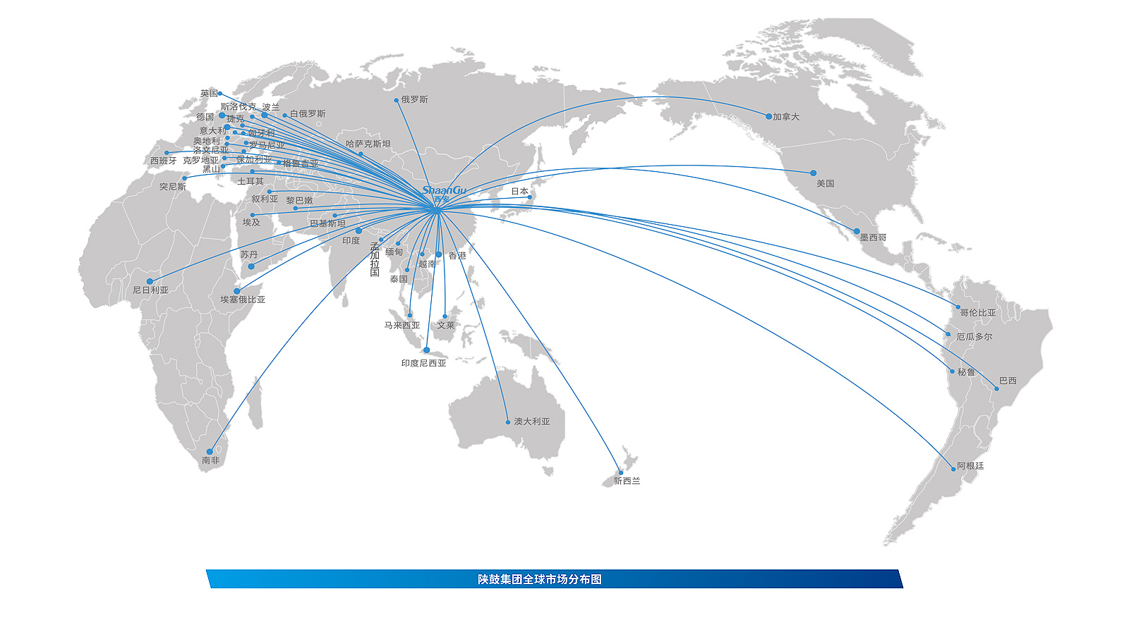 目前,陜鼓“1+7”智慧綠色分布式能源系統(tǒng)解決方案已廣泛應(yīng)用于流程工業(yè)、智慧城市、軍民融合、一帶一路等領(lǐng)域,以“走出去、走進去、走上去”的國際化拓展思路,全力打造全球市場創(chuàng)新體系、全球研發(fā)創(chuàng)新體系、全球供應(yīng)鏈創(chuàng)新體系和全球金融創(chuàng)新體系,向全球輸出高質(zhì)量的智慧方案,助力國內(nèi)與國際雙循環(huán)相互促進。產(chǎn)品與服務(wù)已覆蓋俄羅斯、印度、印尼、土耳其、美國、德國、巴西、韓國、西班牙、泰國、越南等100多個國家和地區(qū)。